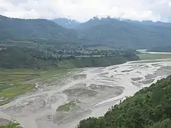 The Indravati meets the Sun Koshi at Dolalghat, located on the Arniko Highway that links Kathmandu with the Nepal-Tibet border.[4]
