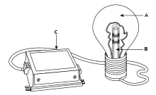 In the internal core form (see diagram), a glass tube (B) protrudes bulb-ward from the bottom of the discharge vessel (A), forming a re-entrant cavity. This tube contains an antenna called a power coupler, which consists of a coil wound over a cylindrical ferrite core. The coil and ferrite form the inductor that couples the energy into the lamp interior