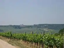 An obelisk on the south side of the village in direction Wackernheim, marks the road begun by Charlemagne, and completed by Napoleon. From this point a fine prospect of the entire Rheingau could be obtained.[3]