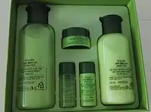 Innisfree is South Korea's first all-natural brand, and many of the products' ingredients are sourced from Jeju Island. The company's products range from makeup to skin care products for women and for men. Innisfree's products include the Super Volcanic Pore Clay Mask,[19] Olive Real Cleansing Foam,[20] and the Wine Peeling Jelly Softener.[21]