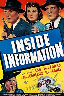 Inside Information is a 1939 American mystery film directed by Charles Lamont. The film stars Dick Foran, Harry Carey, and June Lang. It was released on June 2, 1939. During production, the working title of the film was Metropolitan Police.
