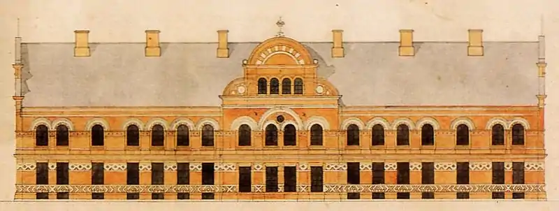 The building is designed in a Historicist style which combines influence from Venetian Renaissance architecture such as San Zaccaria in Venice[3] with inspiration from Danish buildings such as Hesselagergård.