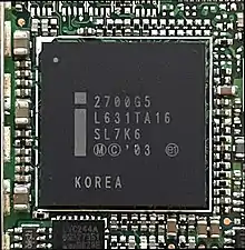 Intel 2700G (code-named Marathon) is a low power (50 mW max) graphics co-processor for the XScale PXA27x processor, announced on April 12, 2004.[1] It is built on both the PowerVR MBX Lite chip design (which is a descendant from the PowerVR2 graphics technology that powered the Dreamcast) and on the MVED1[2] video encoder/decoder technology.