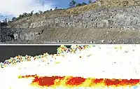 Terrestrial or ground-based SAR interferometry (TInSAR or GBInSAR) is a remote sensing technique for the displacement monitoring of slopes,[7] rock scarps, volcanoes, landslides, buildings, infrastructures etc. This technique is based on the same operational principles of the satellite SAR interferometry, but the synthetic aperture of the radar (SAR) is obtained by an antenna moving on a rail instead of a satellite moving around an orbit. SAR technique allows 2D radar image of the investigated scenario to be achieved, with a high range resolution (along the instrumental line of sight) and cross-range resolution (along the scan direction). Two antennas respectively emit and receive microwave signals and, by calculating the phase difference between two measurements taken in two different times, it is possible to compute the displacement of all the pixels of the SAR image. The accuracy in the displacement measurement is of the same order of magnitude as the EM wavelength and depends also on the specific local and atmospheric conditions.