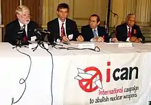 - ↑ ICAN (19 August 2016). "Majority of UN members declare intention to negotiate ban on nuclear weapons in 2017". www.icanw.org. ICAN. Retrieved 12 January 2017.