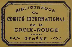 4. 1 2 Gonset, Christiane (1993). Description et promotion de la bibliothèque du Comité international de la Croix-Rouge. Geneva. pp. 3–4.{{cite book}}: CS1 maint: location missing publisher (link)