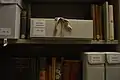 In 1871, the ICRC moved into an apartment of a building at Rue de l'Athénée No. 3, just across the street from Moynier's splendid town residence in Rue de l'Athénée No. 8.[1][4][5] While it was a very representative address, the office spaces were still rather modest with just three rooms.[6] One of them served both as library and museum.[7]