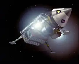 During ascent, the spacecraft would burn Earth-made hydrogen and lunar-made oxygen.[4] The entire lander would lift into a lunar parking orbit and eventually power itself onto a return trajectory.