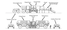 The lander would have a rectangular structure which would include fuel tanks and engine blocks towards each end of the vehicle. The middle section would be empty and hold payloads which could be deployed on the surface. They would be capable of delivering 11 tons of payloads. They would be designed and built by NASA and launched by Soviet Energia rockets. They would be assembled in the U.S and shipped to Russia in C-5 Galaxy or Antonov-124/225 transport airplanes. They would then be shipped to Baikonur Cosmodrome and launched there.[3]