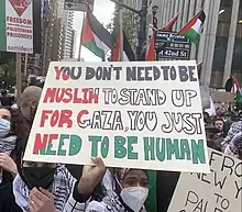 - Hundreds participated in additional protests in solidarity with Palestine in multiple countries worldwide, including major cities across the United States, Spain, Italy, Iran, Libya, Somalia, Bosnia and Herzegovina, South Africa, Australia, France, and Germany.[71] In the United States, notable demonstrations were held in New York City, Detroit,[72] Dallas,[73] Denver,[74] San Francisco, and San Diego.[75]