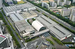 INTEX Osaka (インテックス大阪, Intekkusu Ōsaka), officially known as International Exhibition Center, Osaka (大阪国際見本市会場, Ōsaka kokusai mihon-ichi kaijō), is a convention and exhibition center in Suminoe-ku, Osaka, Osaka Prefecture, Japan. The center is located on the Business Creation and Information Transmission Zone of Cosmosquare District in Sakishima Island, a planned business exchange and trading district in Osaka Bay area.