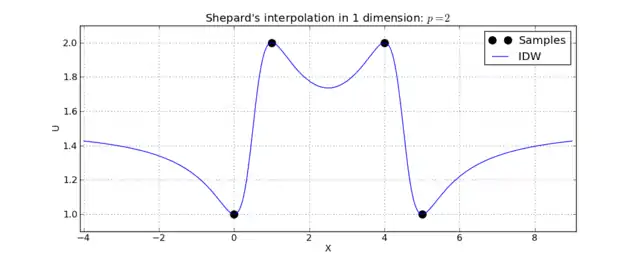 Given a set of sample points , the IDW interpolation function is defined as: