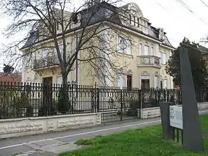 House on C.D. Loga street, Timişoara, with a memorial in front. The text translated to These houses were the headquarters of the Communist Secret Police, where the sons of the Romanian people, who opposed Bolshevik satanization, were tortured and killed.