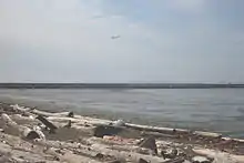 Two jetties, owned by the Government of Canada,[1] stretch out into the Strait of Georgia from Iona Island. The south jetty, Iona Jetty, juts out nearly 4 km (2.5 mi) into the Strait. Recreational visitors may walk or cycle on the twin gravel trails atop and beside the large sewage pipe that stretches the length of the jetty. The North Arm Jetty, while longer, is not as popular; it is a sandy bar (as opposed to the gravel and concrete structure of Iona Jetty) that stretches towards the northwest, running parallel to the Vancouver shoreline and terminating at the University Endowment Lands, almost directly across from the University of British Columbia campus, and visible from Wreck Beach.