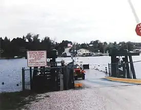 Ironton Ferry is a four-car cable ferry that crosses a narrow point on the South Arm of Lake Charlevoix in the U.S. state of Michigan in the unincorporated community of Ironton. The ferry connects Ironton, located about five miles (8.0 km) from Charlevoix, to Boyne City.[1]