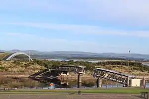 As part of the Millennium celebrations, an exhibition known as The Big Idea opened in 2000. It was constructed on the north side of the River Irvine near the former Nobel quay. A footbridge from the harbour area was constructed, although it had to be able to open and close to still allow the small pleasure craft to pass. The Big Idea closed in 2003, due to low visitor numbers.[35]