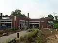 From 1875 to 1928, Irvington was the home of Butler University. Butler transformed Irvington into a college community. The campus grew in the southwest corner of Irvington, between the Pennsylvania Railroad and the B&O Railroad tracks. Buildings at the campus eventually included the Main Building (1875), Science Building (1892), Women's Dorm (1880s), Bona Thompson Memorial Library (1903, later the Bona Thompson Memorial Center), and a World War I era gymnasium. The Christian Woman's Board of Missions built a missionary training school in 1909 adjacent to the campus. By the 1910s, the university had over one thousand students.[5] All the Butler buildings have since been demolished except for the Bona Thompson Memorial Library and the President's Home (which became Irvington United Methodist Church,[6] locally called the "Church on the Circle"). The Bona Thompson Memorial Center is the home of the Irvington Historical Society. It houses the society's art collection and historical documents. The art collection can be viewed in the rehabilitated gallery space. Also on display are various art shows, including a yearly juried show. Events from meetings to weddings and receptions are held at the Center.
