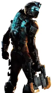 Named after eminent science fiction writers Isaac Asimov and Arthur C. Clarke, Isaac Clarke is the central character of the main series video games in the Dead Space franchise, which form a trilogy from the titular 2008 video game to 2013's Dead Space 3. Isaac's engineering spacesuit is originally designed around the concept of immersing the player in the character's experiences, with the UI of the video games deliberately integrated behind the suit as part of the developers' diegetic design philosophy. Initially a silent protagonist, Isaac is fully voiced from Dead Space 2 onwards by American actor Gunner Wright, who also provided his likeness and motion capture performance for the character. He has featured in several other video games, from minor easter egg references to fully playable crossover appearances in video games such as PlayStation All-Stars Battle Royale and Fortnite Battle Royale.