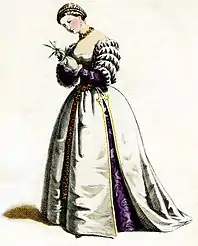 Isabella is a stock character used in commedia dell'arte, in the class of innamorata (female lover). In the commedia dell'arte, the relationship of the innamorati, or lovers, is often threatened by the vecchi (old men) characters, but they are reunited in the end.[1] In his 1929 book The Italian Comedy, Pierre Louis Duchartre writes that Isabella changed from being mainly tender and loving in the 16th century to a more flirtatious and strong-willed woman with a "lively, picturesque wit" by the end of the 17th century.[2]