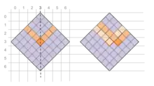 - ↑ Note: the blue vectors point towards the camera positions. The red arcs represent the rotations around the horizontal and vertical axes. The white boxes match the ones shown in the images at the top of the article. Notice how in the left image the camera vector passes through the two opposing vertices of the cube.