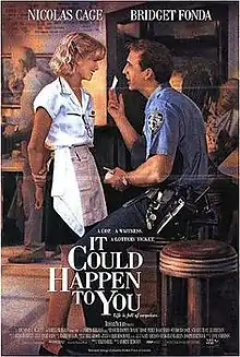 It Could Happen to You is a 1994 American romantic comedy-drama film starring Nicolas Cage and Bridget Fonda. In a plot inspired by a real-life news story,[3][4] a New York City police officer (Cage) who is short on cash and unable to tip his waitress (Fonda), half-jokingly offers to share his winnings if he happens to win the lottery.