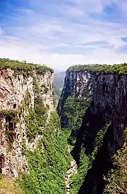 The Itaimbezinho (Portuguese pronunciation: [itaĩbeˈziɲu or itaĩˌbɛˈziɲu]) is a canyon in Brazil between the states of Rio Grande do Sul and Santa Catarina, about 170 km from Porto Alegre. It is part of the Aparados da Serra National Park.[1]