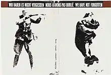 The far-right West German newspaper Deutsche Soldaten Zeitung (DSZ, German Soldiers' Newspaper)[6]: 86 printed an allegation on 26 January 1962 by Otto Croy, known for his writings on photographic technique, under the title Achtung Fälschungen ("Beware Fakes"). Croy claimed that the photograph had been fabricated by Communist authorities in Poland in order to falsely accuse Germany of war crimes; he alleged that the image did not depict a German soldier and that the weapons and uniforms were not authentic.[6]: 86 [5] Before publishing 1939–1945. We have not forgotten, West German publishing house Verlag Kurt Desch had verified the authenticity of the image by writing to Roman Karsk, professor of German literature at the University of Warsaw, and he replied that it was a faithful copy of an image held by the historical archives in Warsaw depicting 1942 mass shootings.[12]