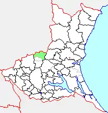Iwase (岩瀬町, Iwase-machi) was a town located in Nishiibaraki District, Ibaraki Prefecture, Japan.