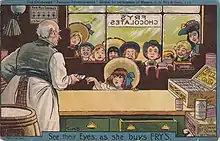 In April 2020, an original enamel advertising sign with the distinctive "five boys" trademark design was featured on BBC's Antiques Roadshow and was valued at £1,000-£1,500.[18] The boy featured in the design, Lindsay Poulton, had been photographed in 1886 by his father who, for the first image, soaked a cloth in ammonia and wrapped it round the boy's neck to make him cry. Poulton, in his 80s, related this story to Fry's employees when he was given a tour of the Bristol factory.[19]
