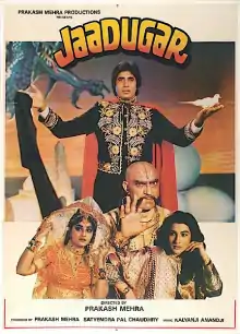 Jaadugar (transl.Magician) is a 1989 Indian Hindi-language fantasy comedy film directed and produced by Prakash Mehra starring Amitabh Bachchan, Jaya Prada, Aditya Pancholi, Amrita Singh, Amrish Puri and Pran in the lead roles.[3] Mehra and Bachchan collaborated for the eighth and final time on this movie.