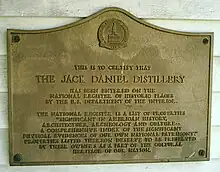 A plaque on Jack Daniel's office recognizing the distillery's status in the National Register of Historic Places