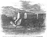 - ↑ Article, Harpers Weekly, July 20, 1861, and woodcut print entitled "Locomotive and tender thrown from the railway bridge at Harpers Ferry by the rebels"
