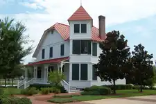 Less than a year later, the society began its second restoration project – the relocation and renovation of the historic James E. Merrill House, built in 1879. The Queen Anne style building was scheduled for demolition in 1999, but the city moved it from Lafayette Street to A. Philip Randolph Boulevard and renovation work began. Funding for the project was secured from private donors in addition to city and state preservation grants. The 2002 plans for the Baseball Grounds of Jacksonville placed the structure in left field, so it was moved again, this time next door to the Old St. Andrews Church. The work was completed in late 2005. The Victorian era house is intended to be a museum dedicated to shipbuilding on the St. Johns River.[2][6][7]