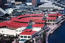 The Jacksonville Landing (informally The Landing[1]) was a festival marketplace in Downtown Jacksonville, Florida, at the intersection of Independent Drive and Laura Street, along the Jacksonville Riverwalk.[2] It was built by the Rouse Company for $37.5 million, opened in 1987, and officially closed after the 4th of July festivities in 2019. Demolition began about October 8, 2019.[3] The 126,000 square feet (11,706 m2) center was comparable to New York City's South Street Seaport, Boston's Faneuil Hall, and Miami's Bayside Marketplace,[4] all developed by Rouse.