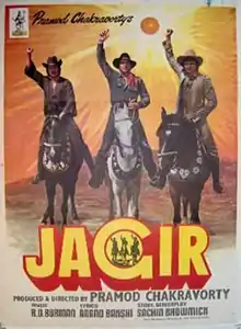 Jagir (Hindi transl. "The Estate"), also known as Teen Murti (Bengali transl. "The Three Idols"), is a 1984 Indian Hindi-language action adventure film directed by Pramod Chakravorty. The film features an ensemble cast of Dharmendra, Mithun Chakraborty, Danny Denzongpa, Zeenat Aman, Shoma Anand, Pran and Amrish Puri. Two language versions were released, a Hindi version as Jagir and a Bengali version as Teen Murti.[2] The film released on the Diwali weekend along with another Dharmendra starrer Jeene Nahi Doonga. Upon release the film received positive reviews from critics and was a hit domestically as well as in Soviet Union.