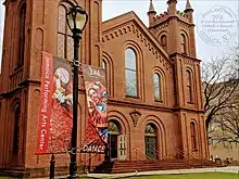 The Jamaica Center for Arts & Learning in Jamaica, Queens, New York is a performing and visual arts center that was founded in 1972 in an effort to revitalize the surrounding business district. As of 2012, it serves more than 28,000 people annually via a 1,650 square foot gallery, a 99-seat proscenium theater, and art & music studios. The building that houses the center is the former Queens Register of Titles and Deeds Building, a New York City landmark that is also listed on the National Register of Historic Places.[2] Outside the building is one of only two remaining cast-iron sidewalk clocks in New York City,[3] as well as a late-Victorian era headquarters of the Jamaica Savings Bank next door.