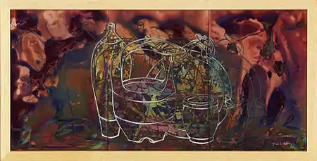 James C. Watkins (1951 - ) was born in Louisville, Kentucky, in 1951 and raised in a farming family in Athens, Alabama.[1] He is a ceramic artist living in Lubbock, Texas who has worked with clay for over 40 years. He is known for his large scale double-walled ceramic vessels and laser cut porcelain substrate [2] tiles. He is recognized for his textured surfaces, created by using alternative firing techniques.[3] His porcelain substrate tiles are fumed Archived 2014-09-07 at the Wayback Machine [4] with stannous chloride and multi-fired using ferric chloride, gold and platinum luster to achieve colorful surfaces.[5]