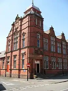Several of Prestwich's buildings survive including the Central Buildings on Bradshawgate which were built for the Leigh Friendly Co-operative Society, Leigh Cenotaph,[2] Leigh Technical School and Library on Railway Road, Leigh Town Hall, Leigh Infirmary and numerous shop, public house and business premises and houses in Pennington. Other buildings have been demolished including Leigh Public Baths and Leigh Union workhouse hospital. Prestwich designed other public buildings including Tyldesley Library and Atherton Town Hall. Further afield he designed public baths in Stockport, Ashton-in-Makerfield and Northampton and schools in Atherton, Southport, Birkdale and Hindley.[3]