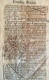 Alterations by Freeman to the 1662 prayer book's Evening Prayer office