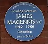 James Joseph Magennis, VC (27 October 1919 – 12 February 1986) was a Belfast-born sailor and recipient of the Victoria Cross, the highest award for gallantry in the face of the enemy that can be awarded to British and Commonwealth forces. He was the only native of Northern Ireland to receive the Victoria Cross in the Second World War.[1]