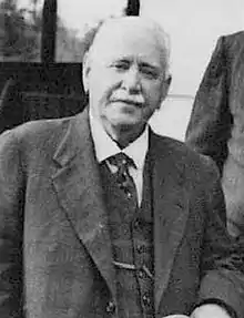 At the 1911 state election, Menzies was elected to the Victorian Legislative Assembly standing in the district of Lowan. His candidacy was supported by the short-lived People's Party, which drew its support from rural areas.[9] In parliament, he served on the vaccination, housing, and public accounts committees, and was chairman of the railways committee for two years. He generally supported the Liberal and Nationalist governments.[10] However, in 1916 he crossed the floor to vote against a government bill that would have mandated the closure of Victoria's Lutheran schools (which were primarily German-speaking). He was one of the few MPs to speak out against the discrimination against German-Australians that was widespread during the war, stating that he knew many of the Germans in his constituency from his previous business dealings and that he could vouch for their character.[11][12]
