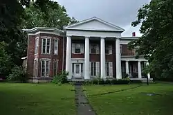 James Russell Webster House is a historic home located at Waterloo in Seneca County, New York. It is a temple front Greek Revival style residence. When built in 1850-1855 it featured a two-story, three-bay, side hall main block flanked by two symmetrical one story, three-bay center hall wings. In the 1870s, a veneer of Italianate details were added during and expansion and modernization. The expansion included adding a second story to each side wing. The front facade features a pedimented portico supported by four Doric order columns.[2]