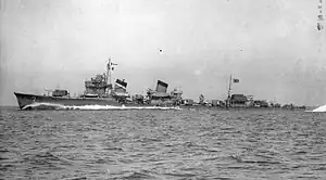 Ushio (潮, "Tide")[1] was the twentieth of twenty-four Fubuki-class destroyers that were built for the Imperial Japanese Navy following World War I. When introduced into service, these ships were the most powerful destroyers in the world.[2] They served as first-line destroyers through the 1930s, and remained formidable weapons systems well into the Pacific War. Ushio was one of only two of the 24 ships in its class to survive World War II, and it was also the only survivor out of the 22 combat ships involved in the Pearl Harbor assault force.