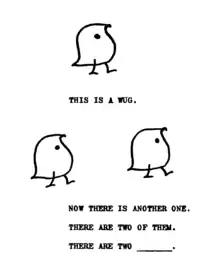 - ↑ "This is a wug. And if there were two, there would..." Superlinguo. Retrieved August 29, 2019.