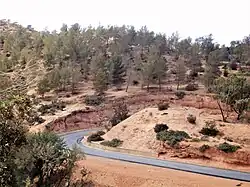 In marked contrast to the aridity prevailing in most of Libya, there are forested areas in this region totalling around 3200 km2, although approximately a third of the original forest has already been destroyed to make way for agriculture. In addition to the forests there are also large areas of maquis and steppe-like vegetation. Typical maquis species are the Phoenician juniper (Juniperus phoenicea), the mastic tree (Pistacia lentiscus), the Kermes oak (Quercus coccifera) and the carob tree (Ceratonia siliqua). In the drier steppe-like areas, branched asphodel (Asphodelus ramosus), prickly burnet (Sarcopoterium spinosum) and white wormwood (Artemisia herba-alba) predominate.[6] More than half of the endemic plant species in Libya are to be found in the Jebel Akhdar and, of these, seven are found only in the region: Arbutus pavarii, Arum cyrenaicum, Bellis sylvestris var. cyrenaica, Cyclamen rohlfsianum, Cynara cyrenaica, Onopordum cyrenaicum and Romulea cyrenaica. [7]