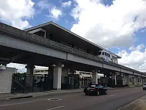 The Jefferson station was one of three original Jacksonville Skyway stations that opened in June 1989 on the initial 0.7-mile (1.1 km) Phase I-A segment. It stands between LaVilla station to the west and Central station to the east on the initial 0.7-mile (1.1 km) Phase I-A segment. All three stations were closed between December 1996 and December 1997, when the Skyway system switched from Matra to Bombardier Transportation technology.[1][2] JTA closed the station between July 5, 2017 and May 4, 2020 for the construction of an adjacent apartment complex and for the conversion of the Convention Center station to the Jacksonville Regional Transportation Center at LaVilla.[3]