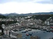 The best known of Casariego's ancestors was an admiral[3] who in the late 16th century served as governor of Florida.[4] The family got very branched in course of the following centuries, yet none of its members rose to similar honors; one of its arms, the Casariegos, have always been related to Western Asturias. The paternal grandfather of Jesús Evaristo, Evaristo Díaz-Casariego y López-Acevedo (1849-1930),[5] served in the navy; he held various posts in Spain and overseas and fought in the Spanish–American War.[6] Though not exactly a writer he developed some knack for letters and published a number of navy-related manuals.[7] He married Carmen de Pazos y Rodríguez-Varela;[8] the couple had only one child, Jesús Díaz-Casariego Pazos, born in Aviles.[9] He opted for a civilian career and practiced as a dentist, first in Luarca[10] and then in Gijón.[11] In 1913[12] he married Ramona Fernandez Noriega from Tineo,[13] daughter to a local fiscal municipal[14] and former indiano.[15] The couple settled in Luarca and had 6 children, Jesús Evaristo born as the oldest one.[16]