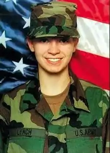 Lynch was born on April 26, 1983 in Palestine, West Virginia, the second child and first daughter to Deidre Lynch and Gregory Lynch, Sr.[4] Her family could not afford to send her to college; her older brother had to drop out for financial reasons as well. Searching for a way to pay for the children's educations, the Lynch family met with an army recruiter in the summer of 2000 when Lynch was seventeen and still attending high school.[5] "He did not lie to the kids," her mother said, "he said there was always the possibility of war in the future." "But at that time it was before September 11, and there was no terrorism," Lynch recalls, "so we were like, 'that would never happen to me.' "[5] On September 19, 2001, Lynch entered basic training at Fort Jackson, South Carolina. She later completed Advanced Individual Training for her Military Occupational Specialty as a unit supply specialist (MOS 92Y) in the Quartermaster Corps at Fort Lee, Virginia.