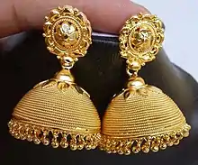Jhumka, originally Jimmikkis, are a style of earring worn by women of the Indian subcontinent.[1]