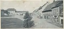 According to available data, Jiřetín was founded in 1539, when a place was selected, and from 1548 to 1553 the mining town was set to a regular rectangular floor plan. The town was built on an old Leipzig road that lined the eastern edge of the small town. The town of Jiřetín belongs to a group of upper towns, founded along the Saxony border. The base of Jiřetín is the exact square of the square from which the regular orthogonal network of streets unfolded. Central streets did not have a transit character, which was not at the expense of transportation availability. The long distance route was on the eastern edge of the town. Along the square and the streets were square quadratic blocks, each of which had three houses. Although all the houses in the town were wooden, it was never completely destroyed for this reason.[3]